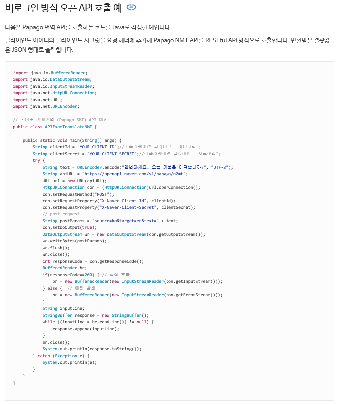 . 다음과 같은 단계로 네이버 오픈API를 사용하면 됩니다.
